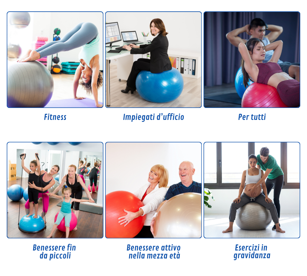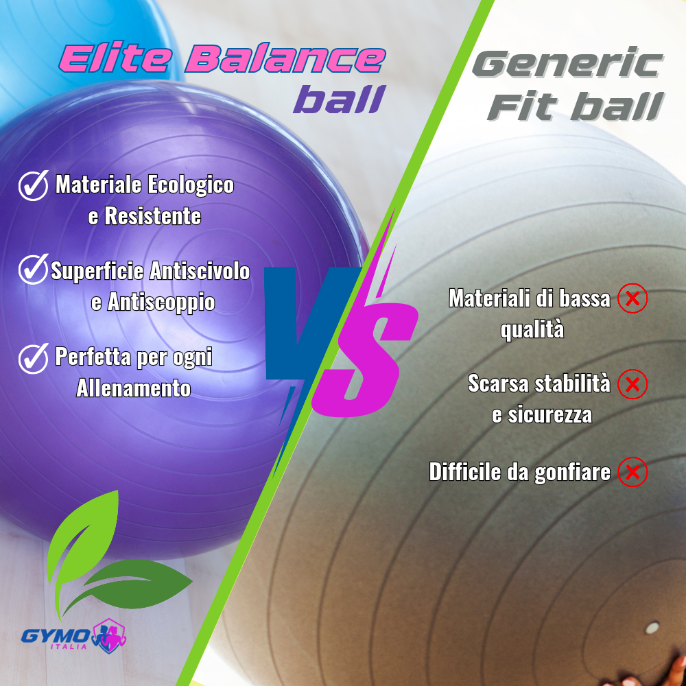 Elite Balance Ball e raccomandata da personal trainer e fisioterapisti per migliorare la postura, ridurre i dolori lombari e potenziare i muscoli profondi della schiena e dell'addome.